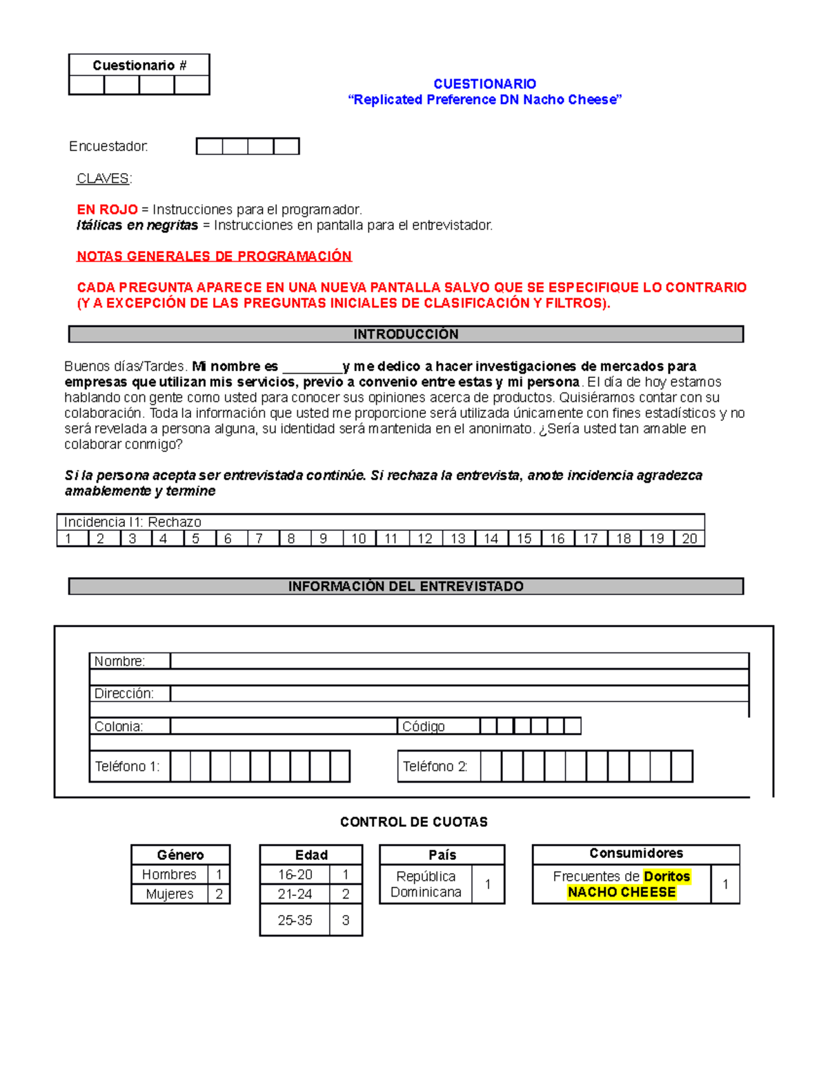Cuestionario Replicated Preference Nacho Cheese RD - CUESTIONARIO ...