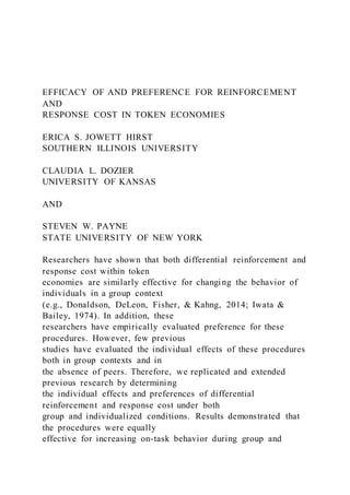 EFFICACY OF AND PREFERENCE FOR REINFORCEMENT ANDRESPONSE COS | DOCX