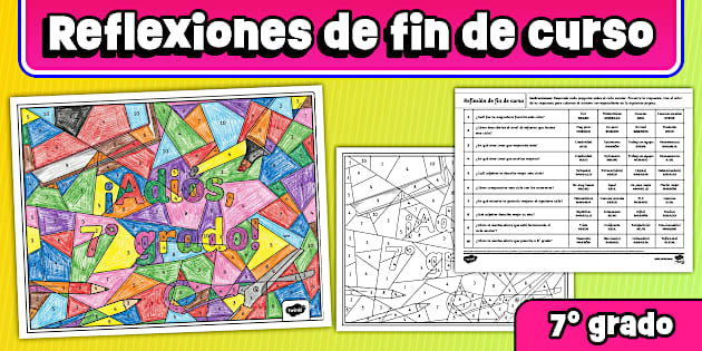 Hoja para colorear reflexiones de fin de curso para 7° grado