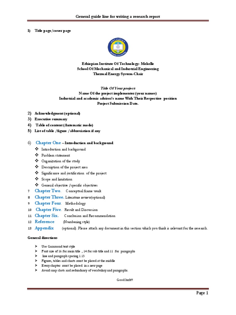 General Format and Guide Line of The Report | PDF