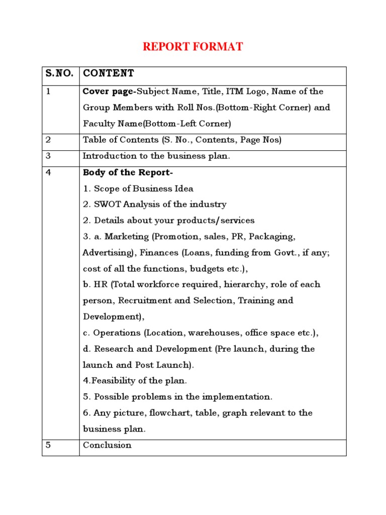 Business Plan Report Format Guide | PDF