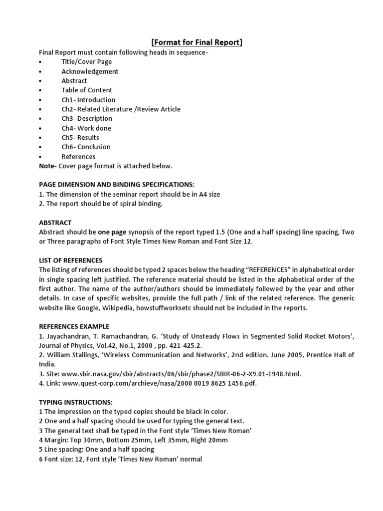 Report Format For Preparation of Seminar Report | Download Free PDF ...