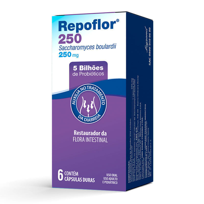 Repoflor 250 Saccharomyces Boulardii 250mg Com 6 Capsulas Legrand ...