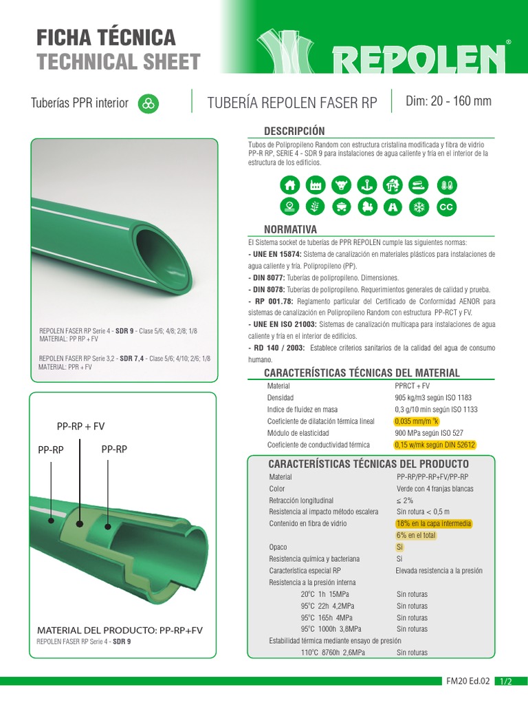 Tuberia PP-R Repolen Faser Clima - FICHA TÉCNICA TECHNICAL SHEET ...