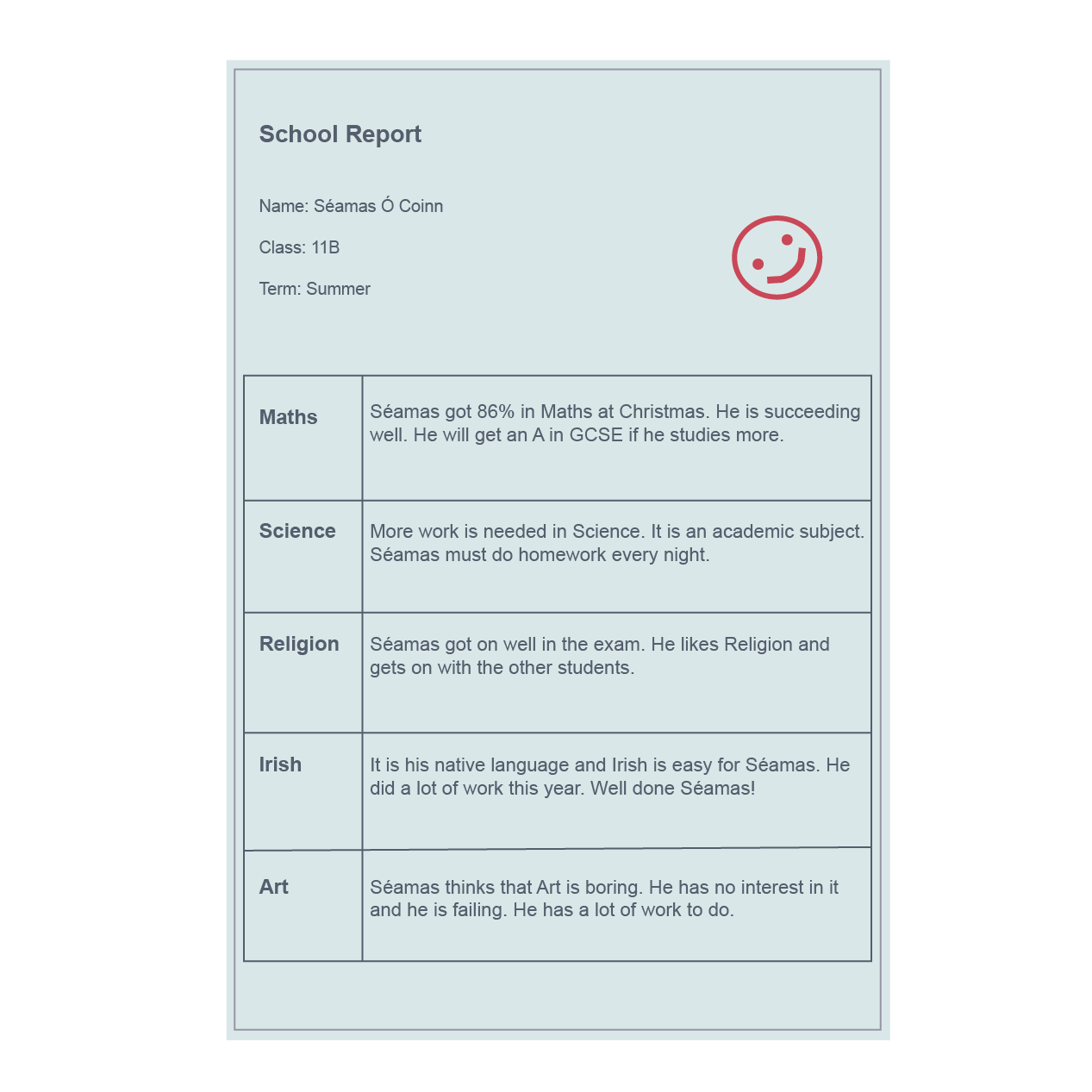 School report task - Foundation - My studies - GCSE Irish – Learners ...