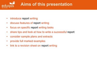 Writing tasks reports GCSE english Language | PPTX