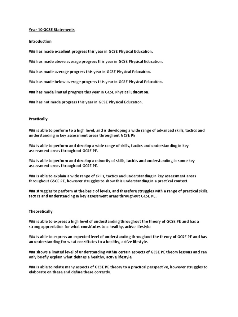 GCSE Report Statements | PDF | Physical Education | Theory