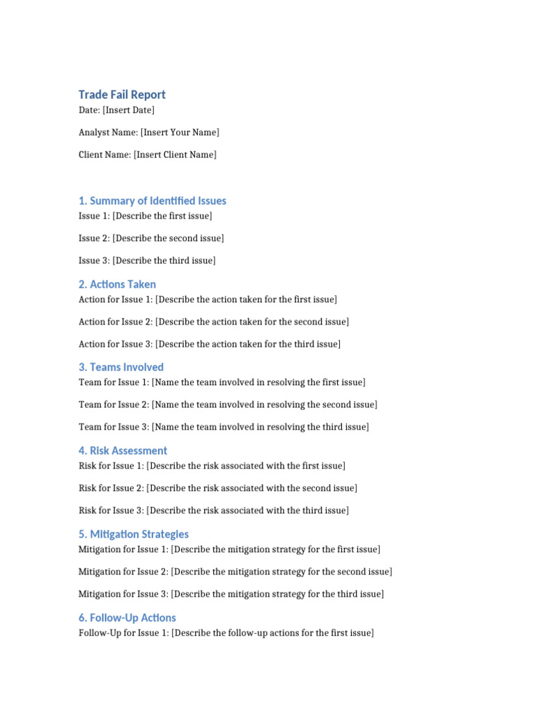 Trade Fail Report Template | PDF