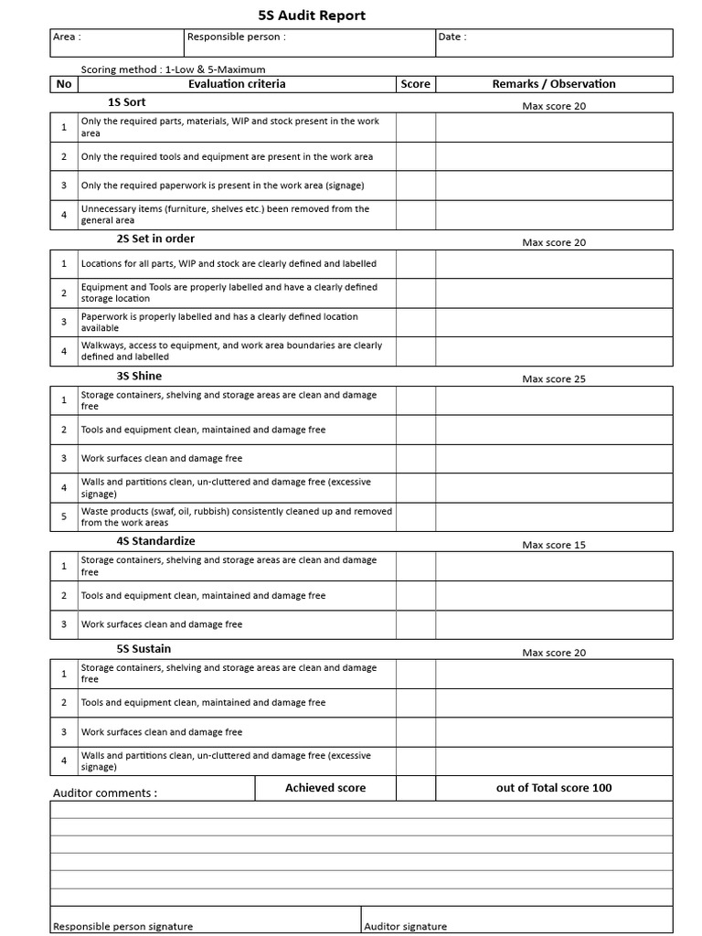 Buy 5S Audit Checklist | 5S Audit Checklist for Manufacturing| 5S ...
