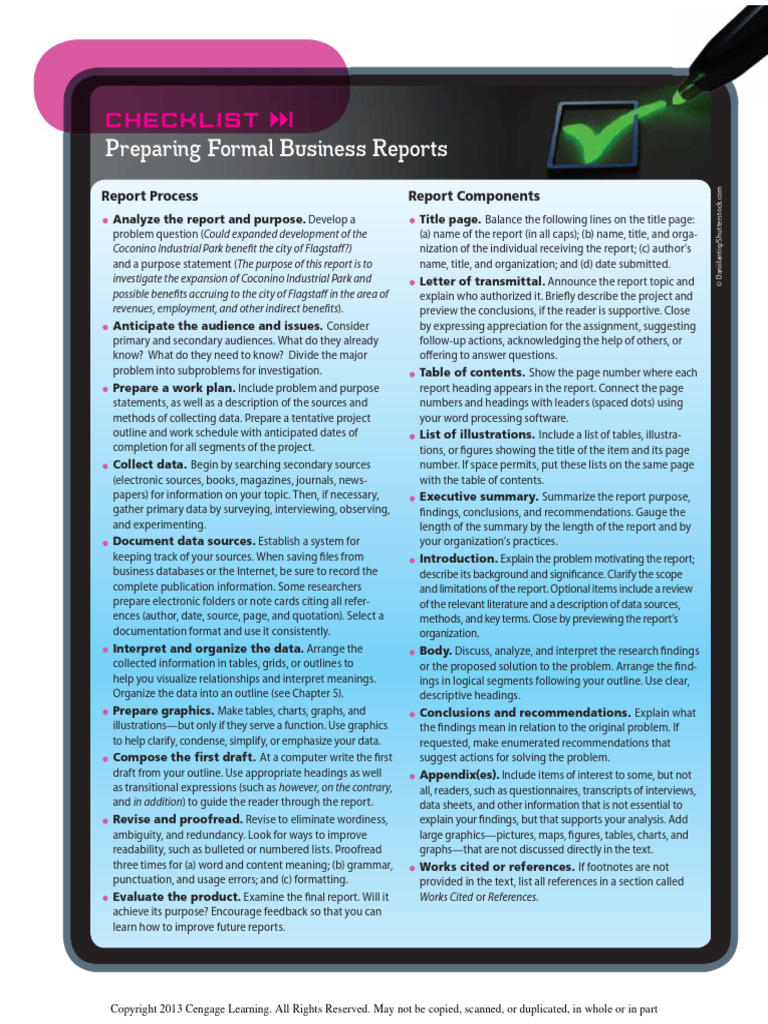 Checklist For Preparing Formal Business Reports | PDF | Proofreading | Data