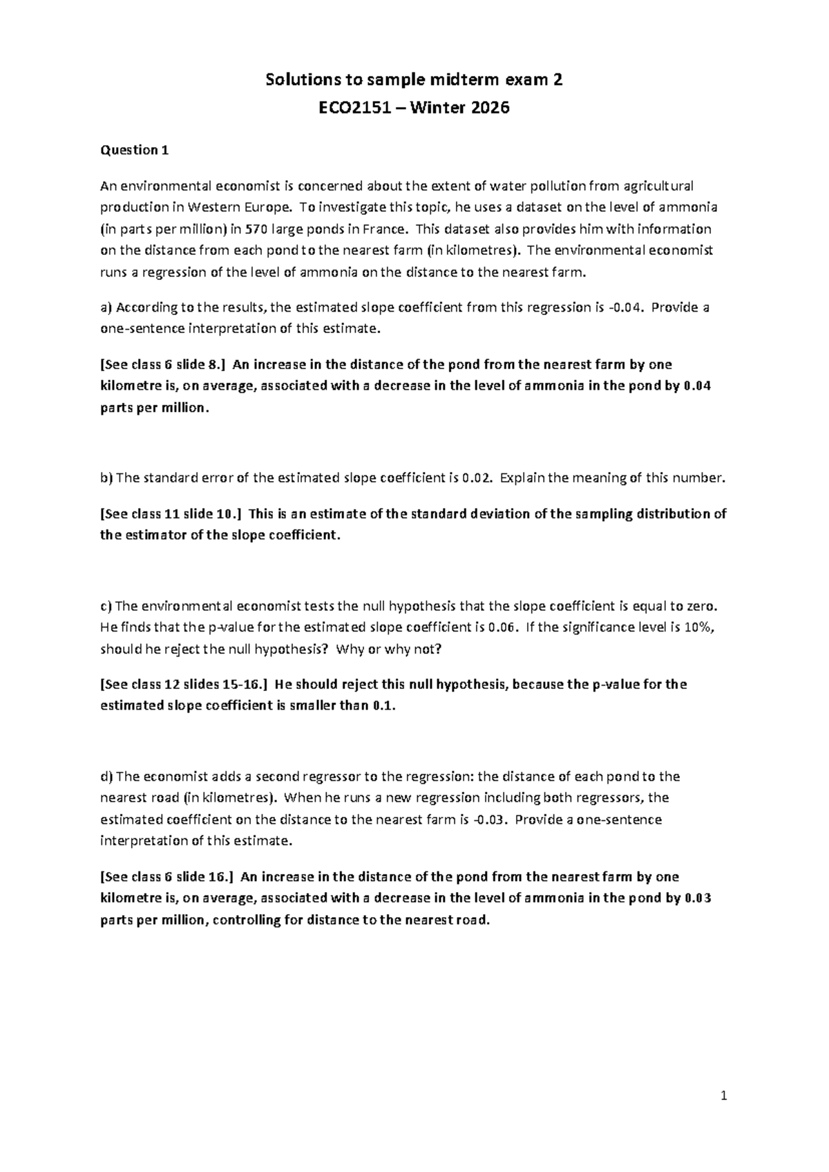 Solutions to Sample Final Exam ECO2151 - Winter 2026 - Studocu