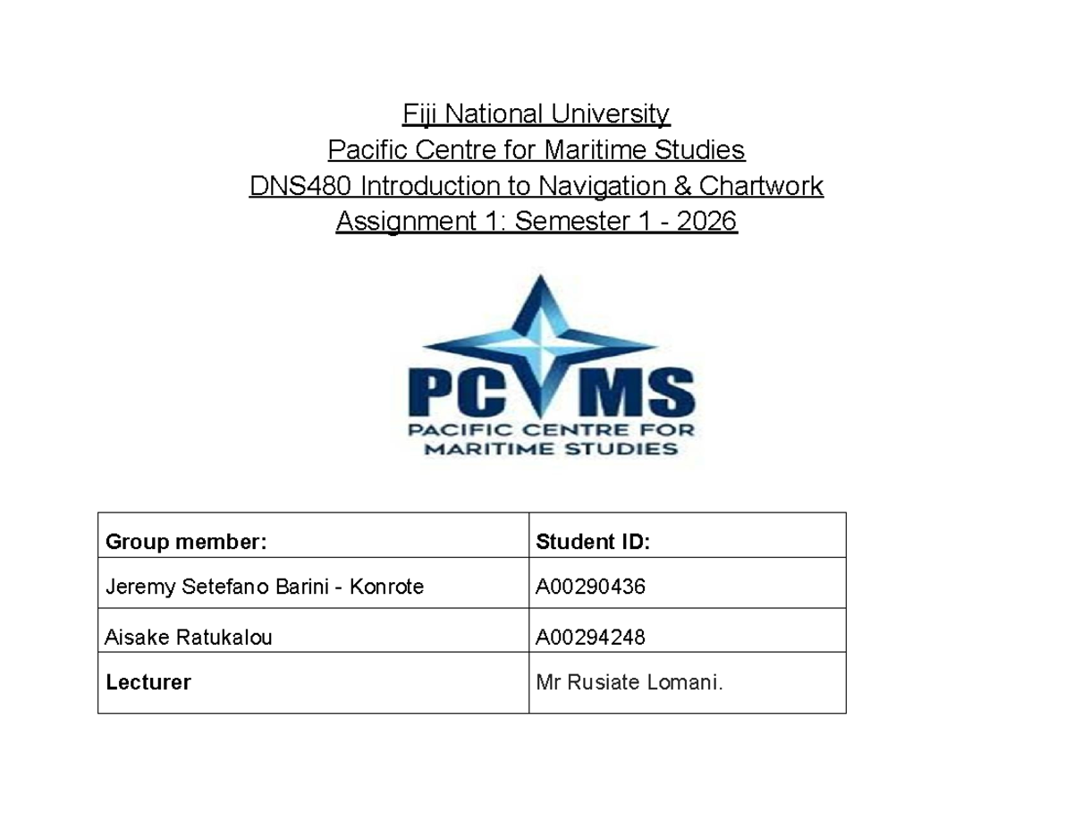 DNS480 Introduction to Navigation Chartwork Assignment 1: Passage ...