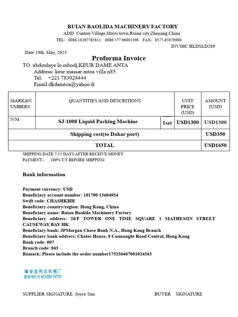 Proforma Invoice 1 | PDF