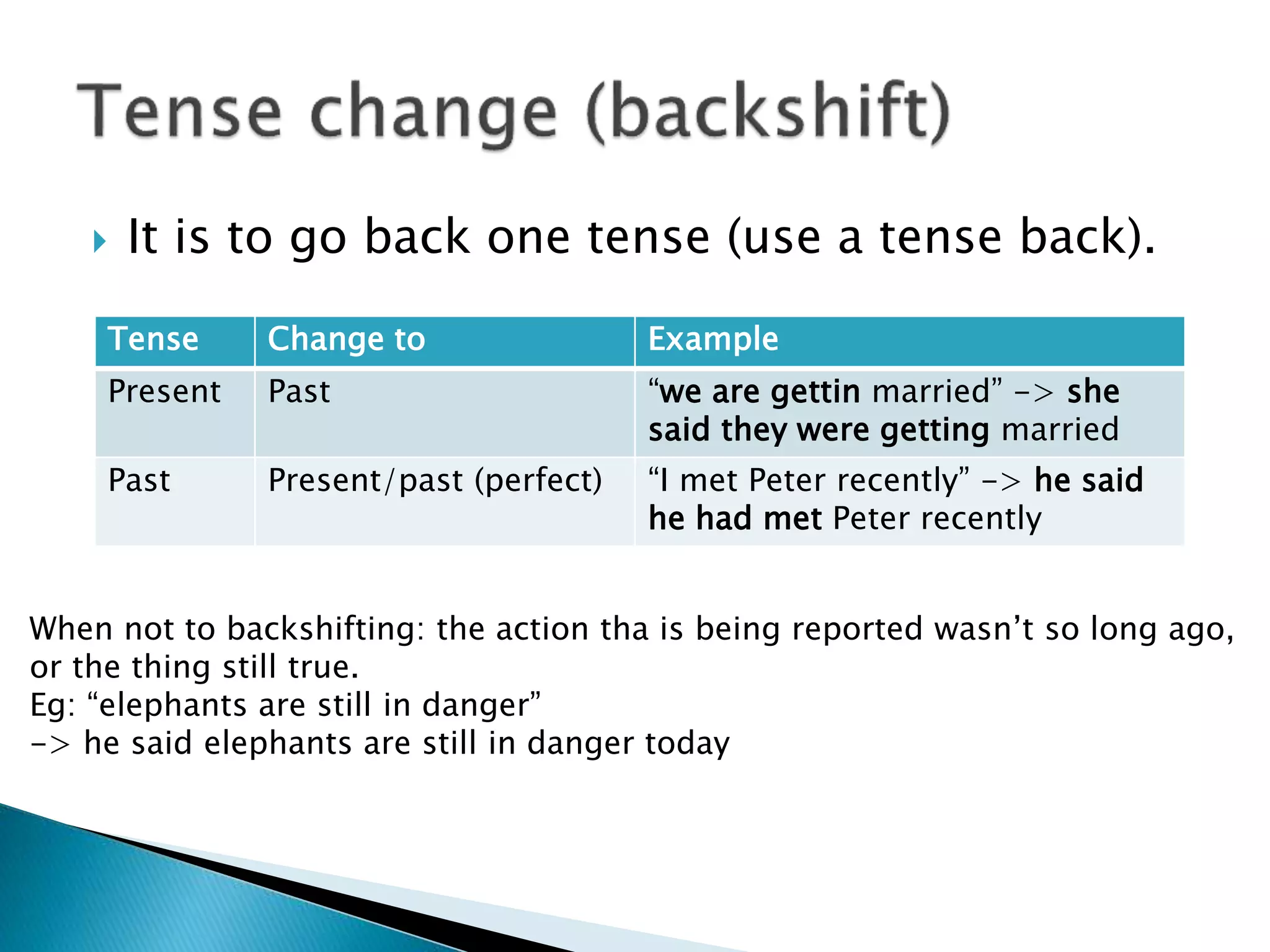 Backshift of Tenses REPORTED SPEECH | Grammatical Tense | Linguistic ...