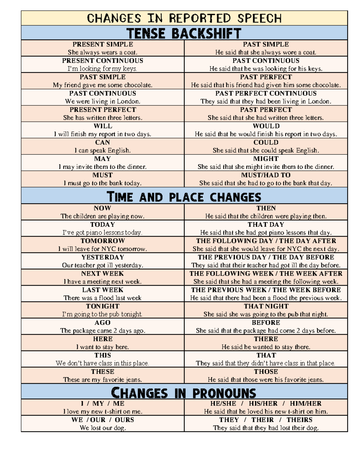 Reported Speech Chart REPORTED SPEECH | My English Blog