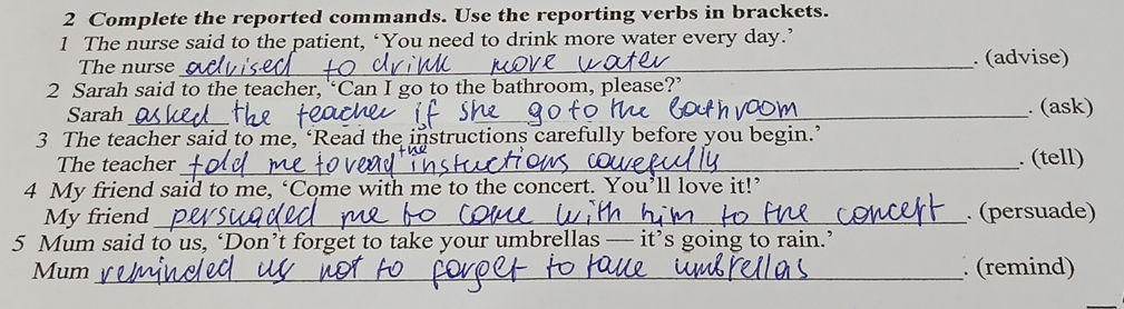 Reported speech command and request exercises - cigarmeva