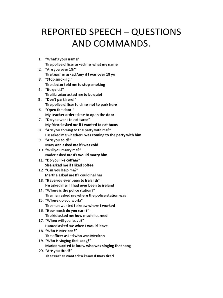 Reported Speech Explanation - Questions, Commands and Requests | PDF ...