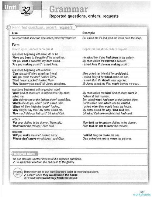 UNIT 32 REPORTED QUESTIONS REQUESTS. Interactive worksheet | TopWorksheets
