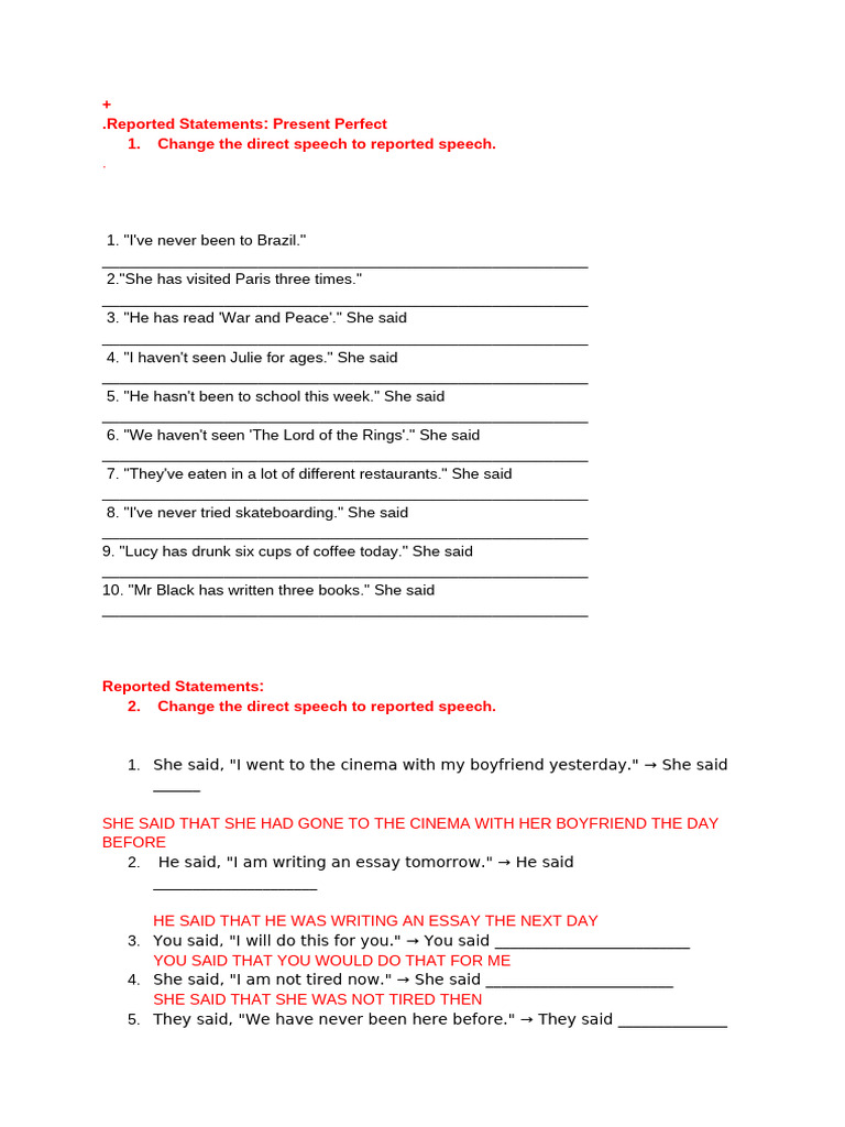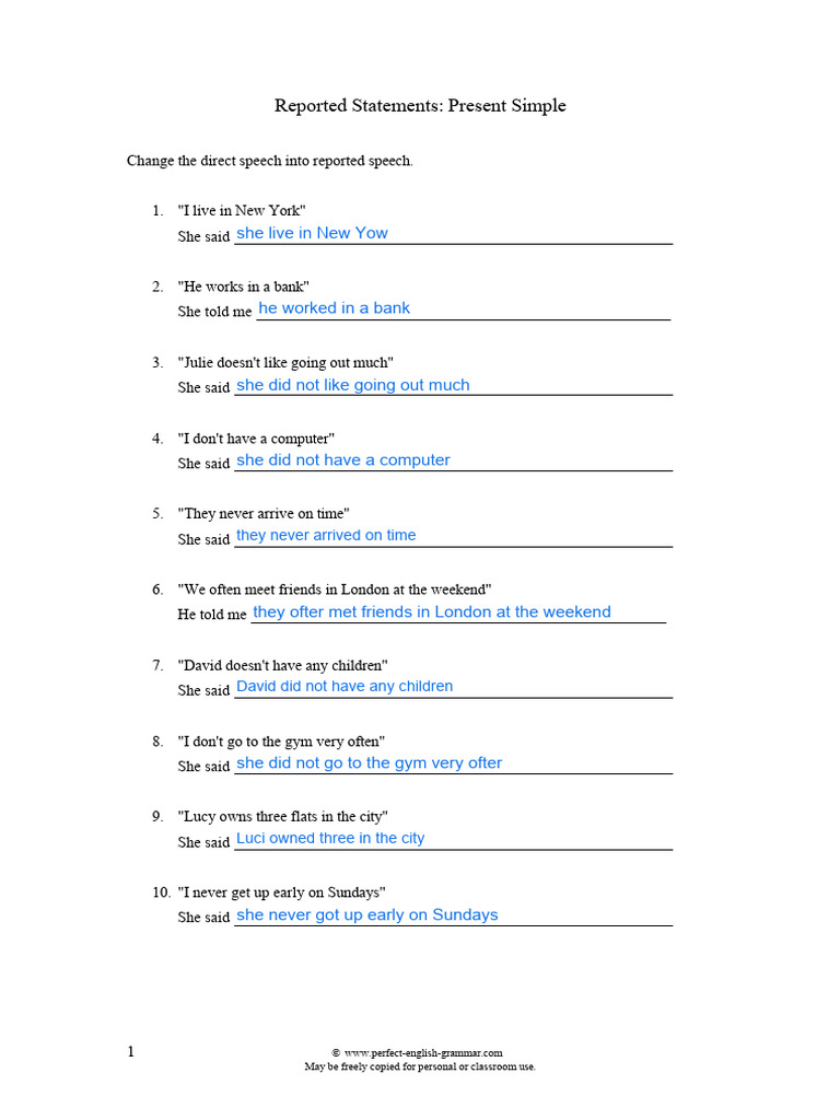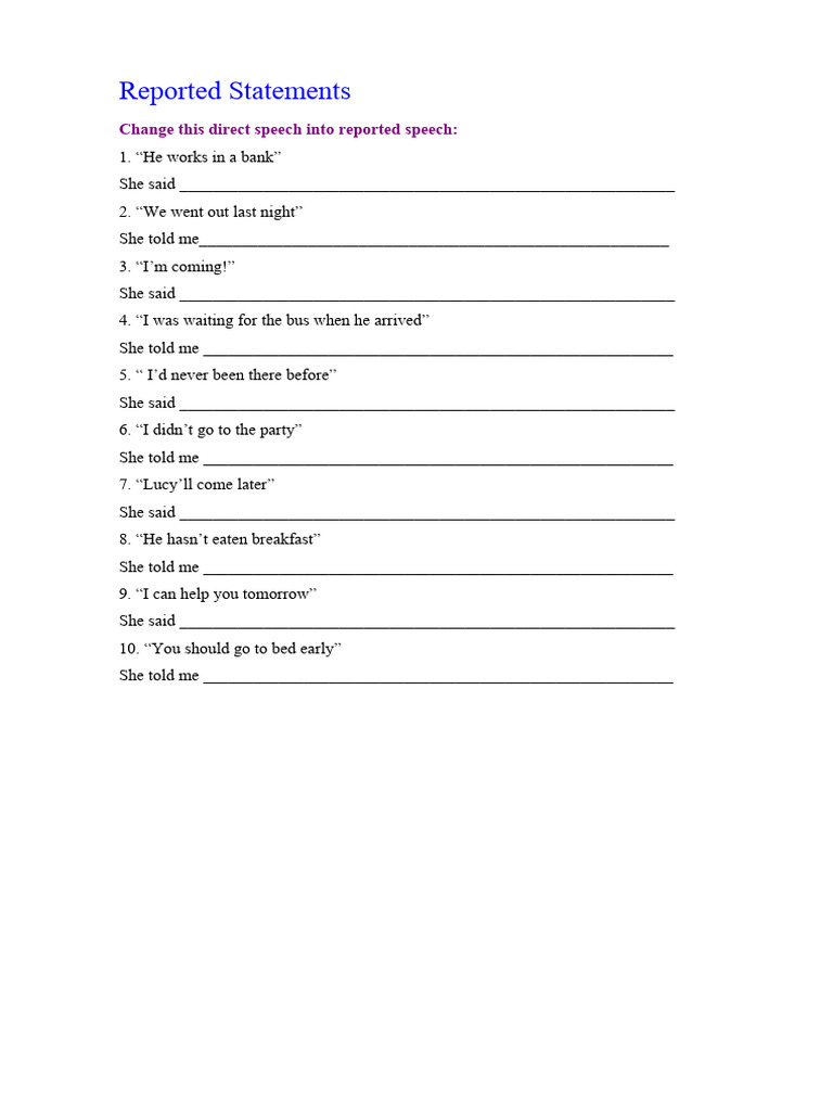 Reported Statements - Worksheet 1 | PDF