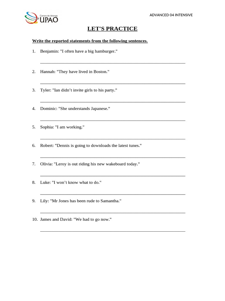 Reported Statements Exercises May 16th | PDF