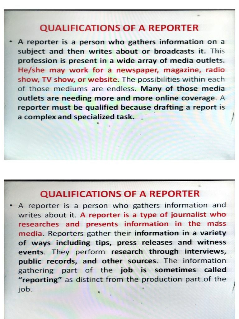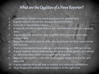 Qualities OF A Reporter - QUALITIES OF A REPORTER The reporter must ...