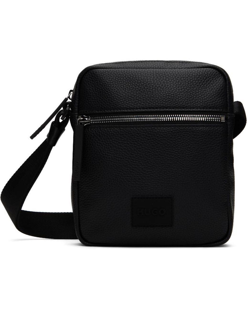 HUGO Black Faux-leather Reporter Logo Patch Bag for Men | Lyst