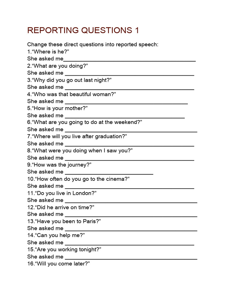 REPORTING QUESTIONS - ESL worksheet by mirene