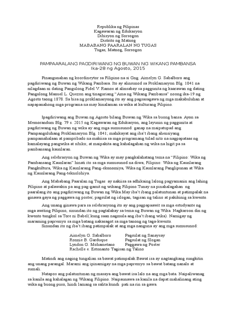 Narrative Report in Filipino Buwan NG Wikadocx PDF Free | PDF