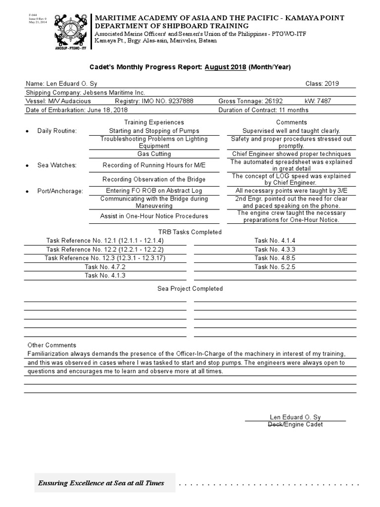 August 2018 Monthly Progress Report | PDF | Merchant Navy | Watercraft