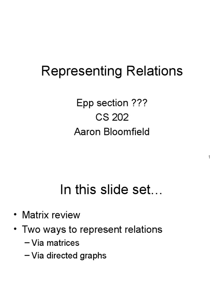 PPT - Representing Relations: Methods and Matrix Analysis in Discrete ...