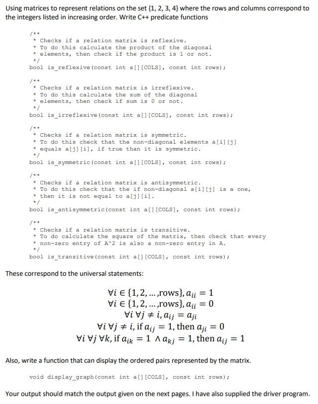 Solved Using matrices to represent relations on the set (1, | Chegg.com