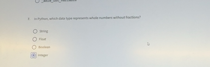 Solved: In Python, which data type represents whole numbers without ...
