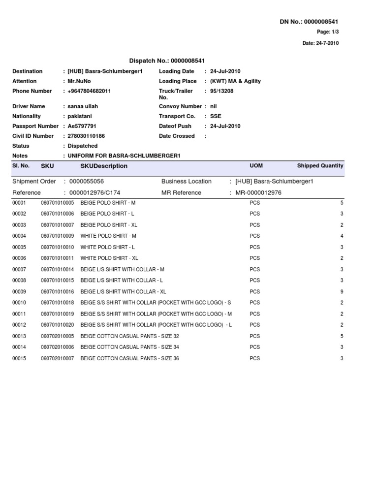 DispatchNote 0000008541 | PDF | Uniforms | Dress Codes