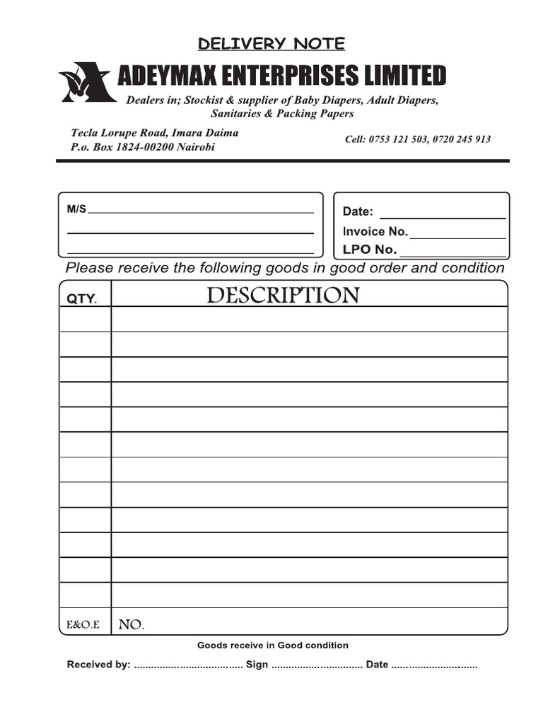 Delivery Note Template