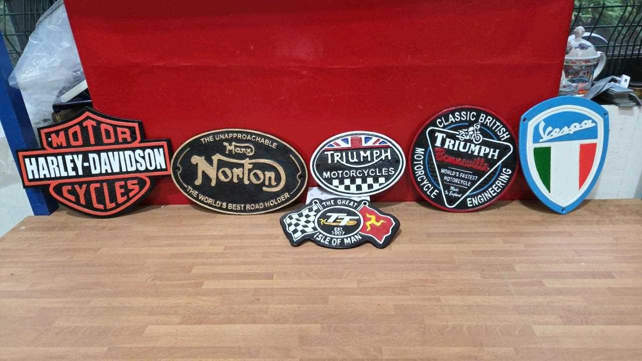 Lot 587 - 6 CAST REPRO MOTOR BIKE SIGNS