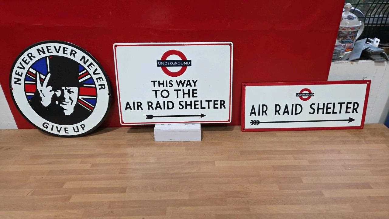 Lot 571 - 3 X WW2 STYLE REPRO ENAMEL SIGNS