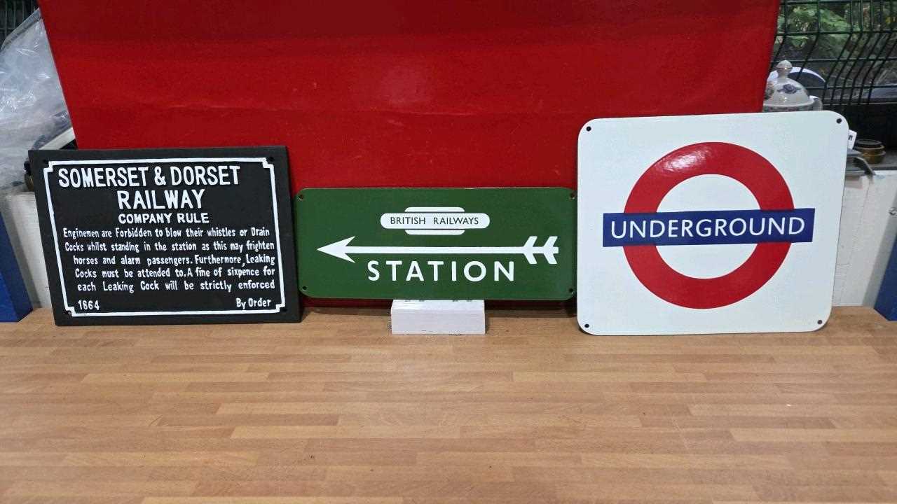 Lot 881 - 2 ENAMEL & 1 CAST RAILWAY REPRO SIGNS