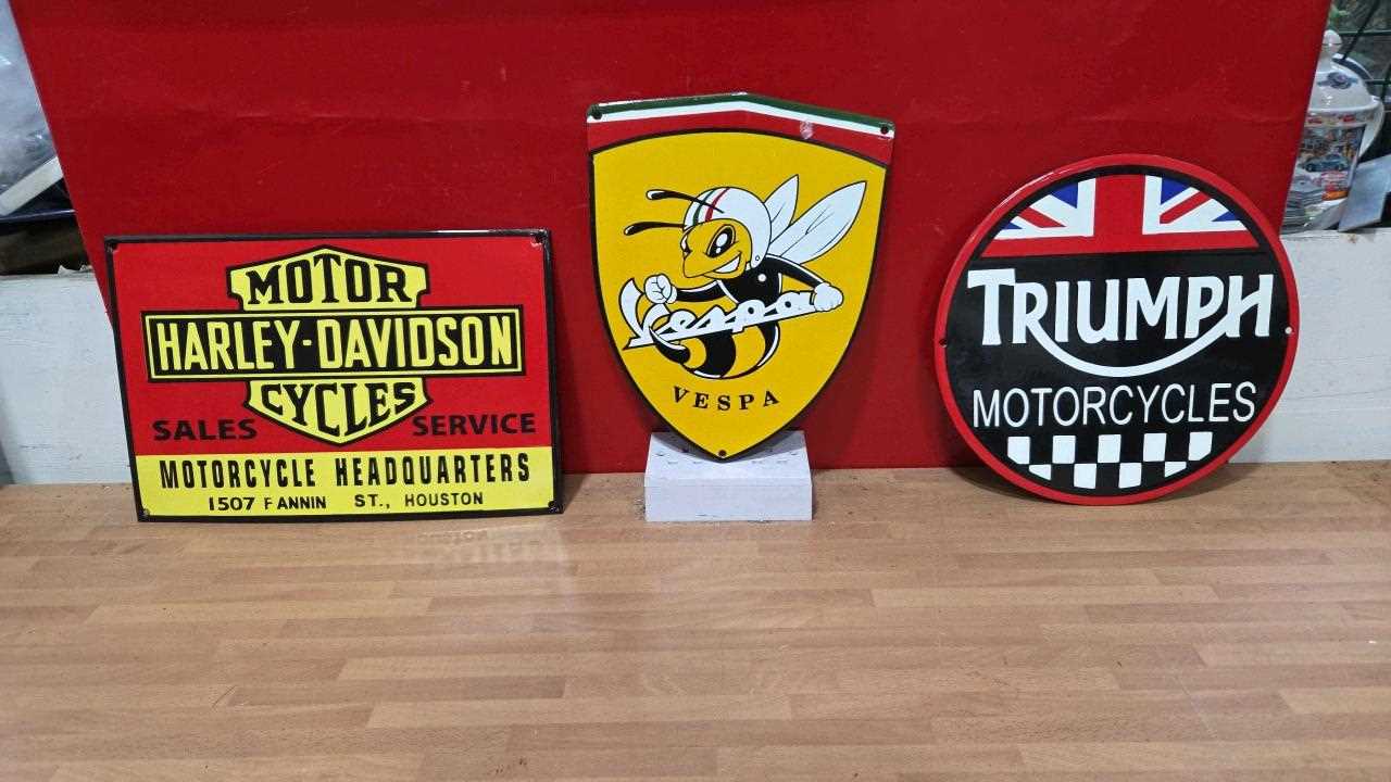 Lot 865 - 3 ENAMEL REPRO MOTOR BIKE SIGNS