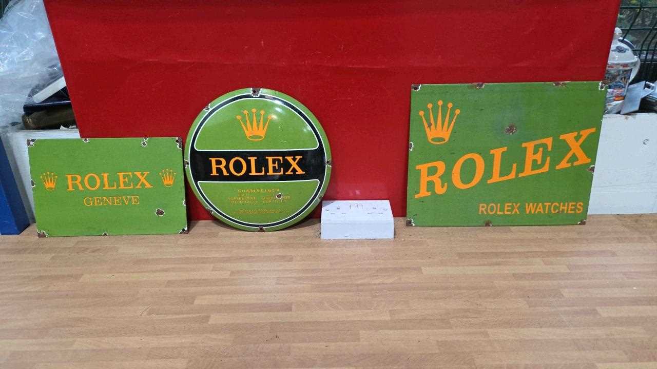 Lot 843 - 3 ENAMEL ROLEX STYLE , REPRO SIGNS
