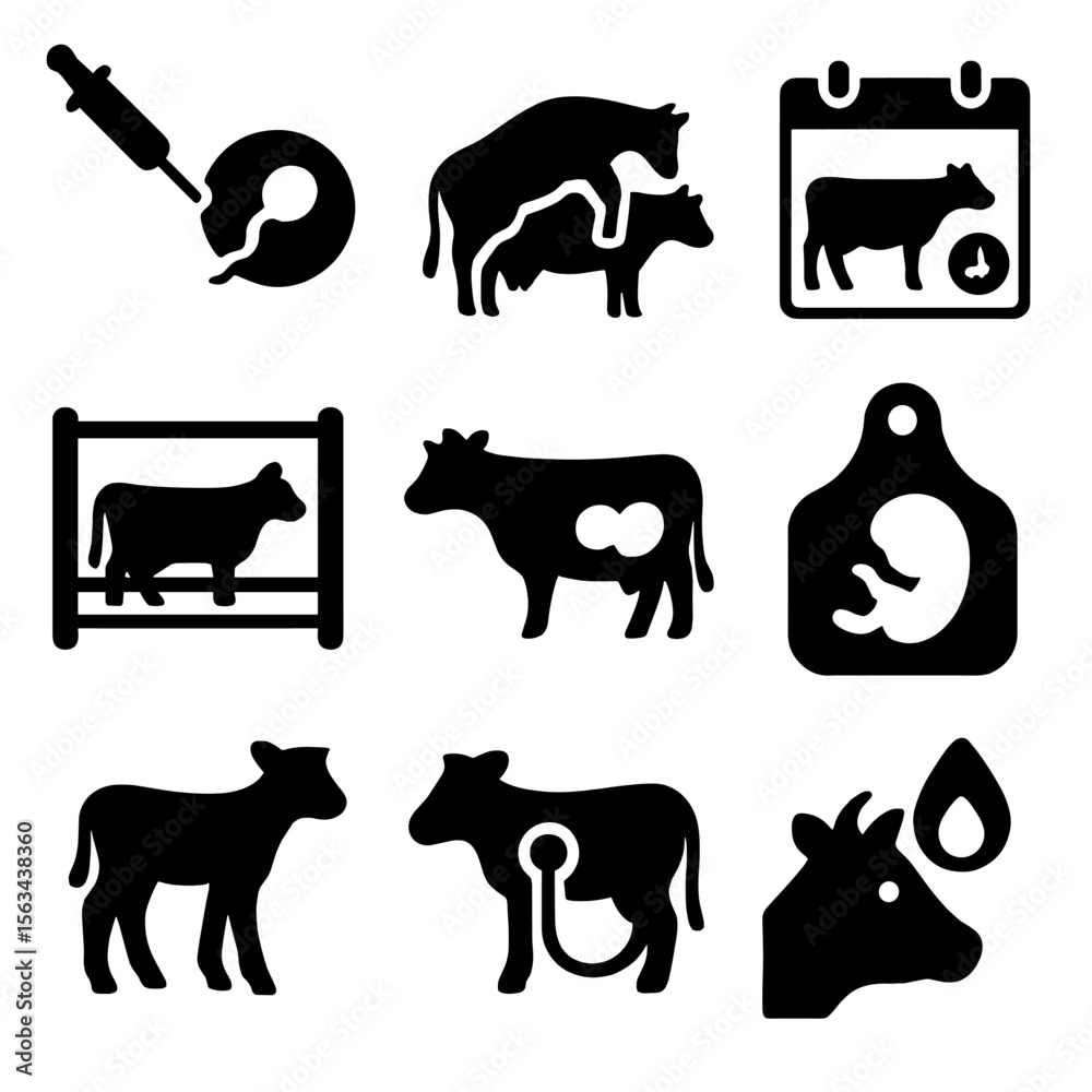 Breeding and Reproduction Icons. Solid vector icons of breeding and ...