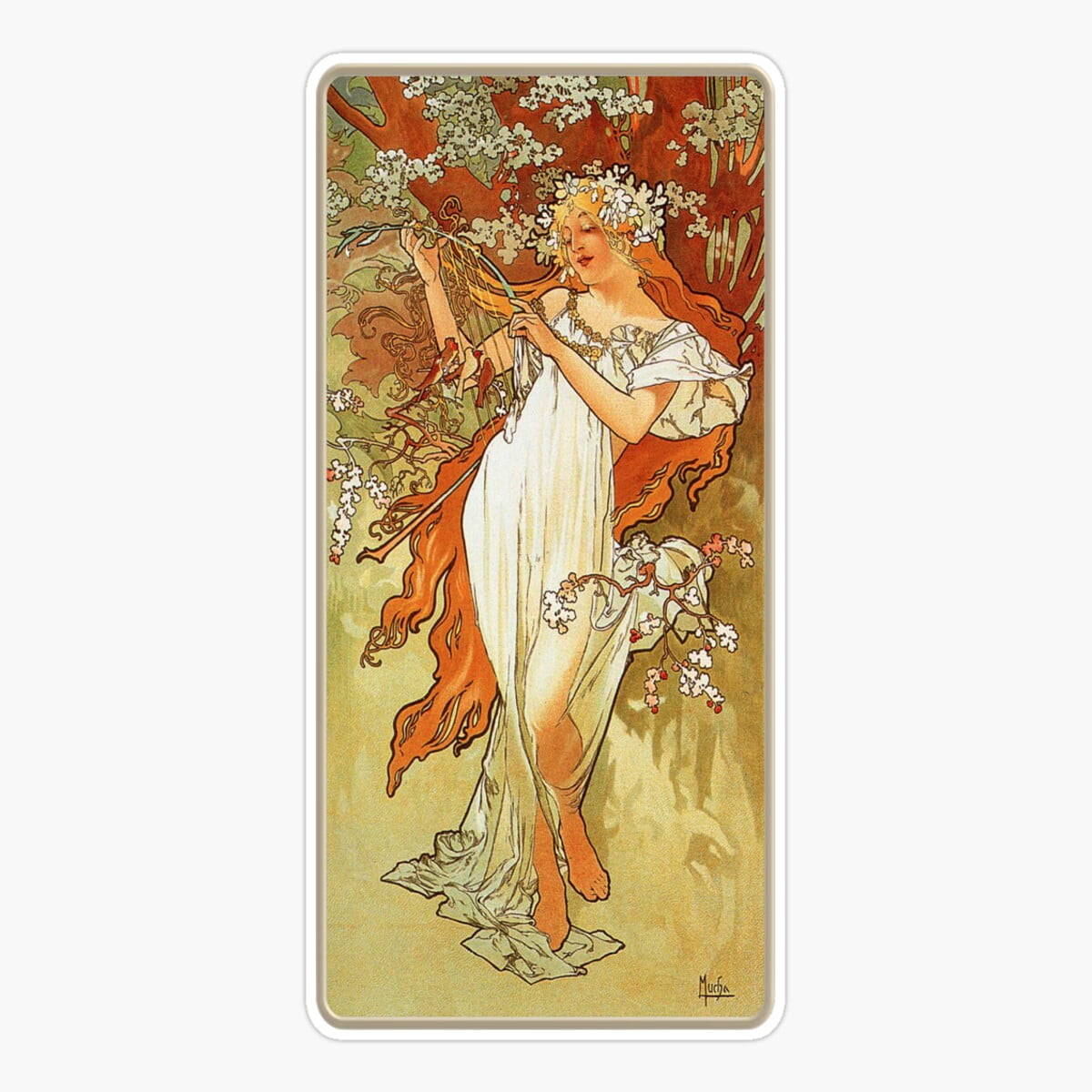 Maneki Spring By Mucha - Vintage Four Seasons Reproduction 1896 Sticker ...
