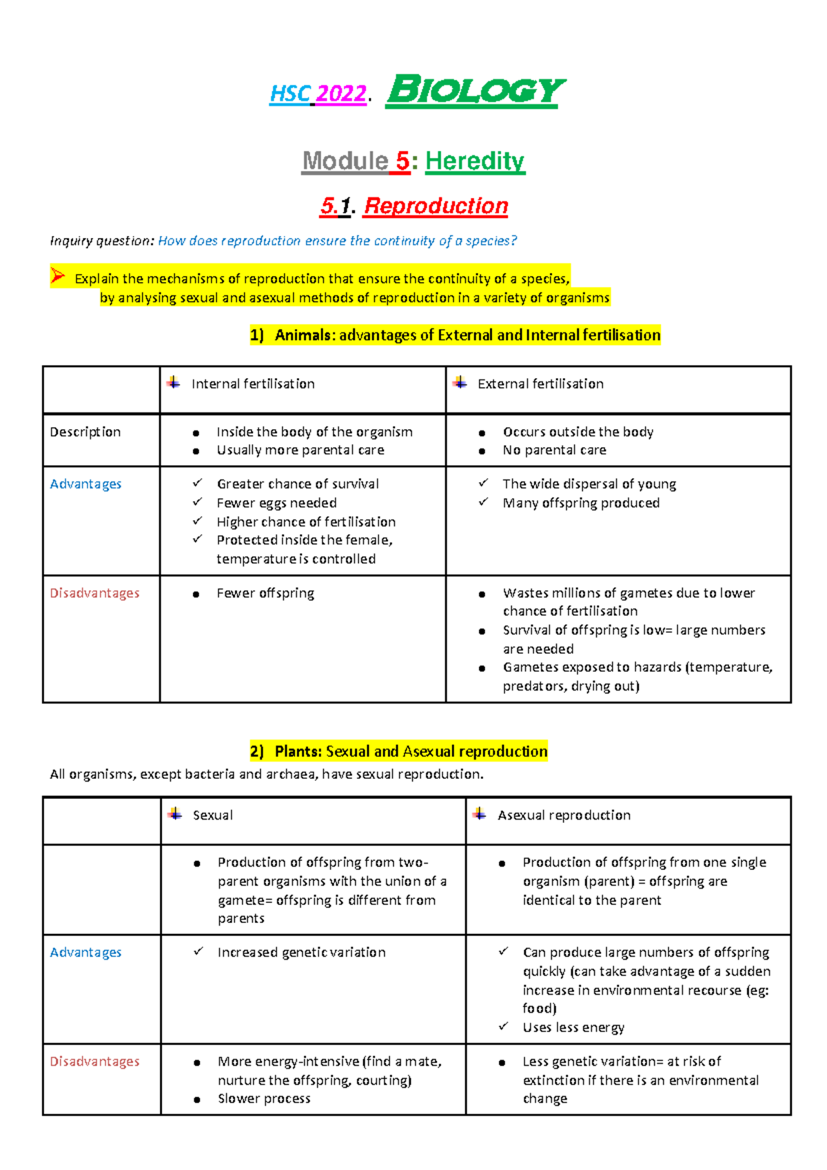Biology Notes (Ace HSC): Module 5 - Heredity & Reproduction Mechanisms ...