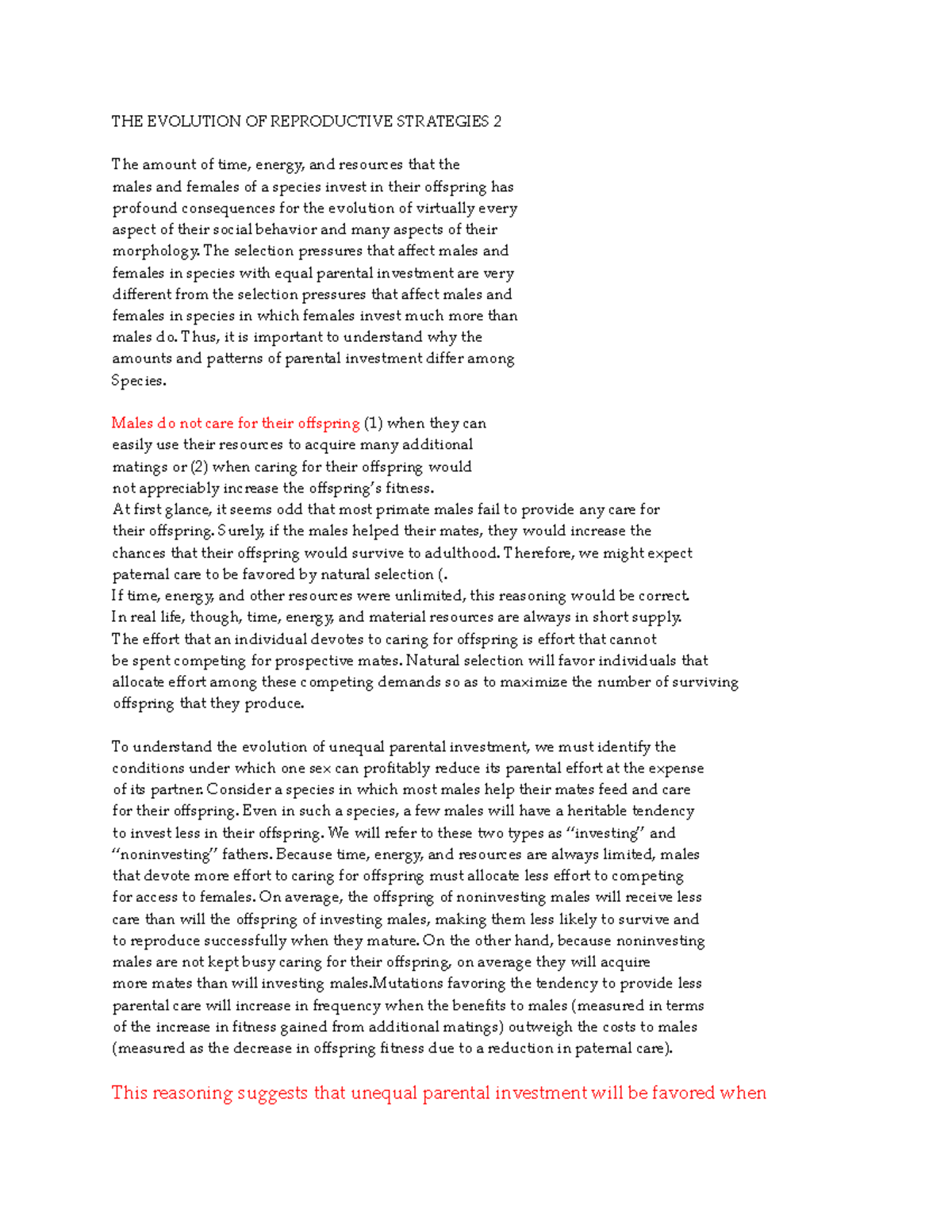 THE Evolution OF Reproductive Strategies 2 - THE EVOLUTION OF ...