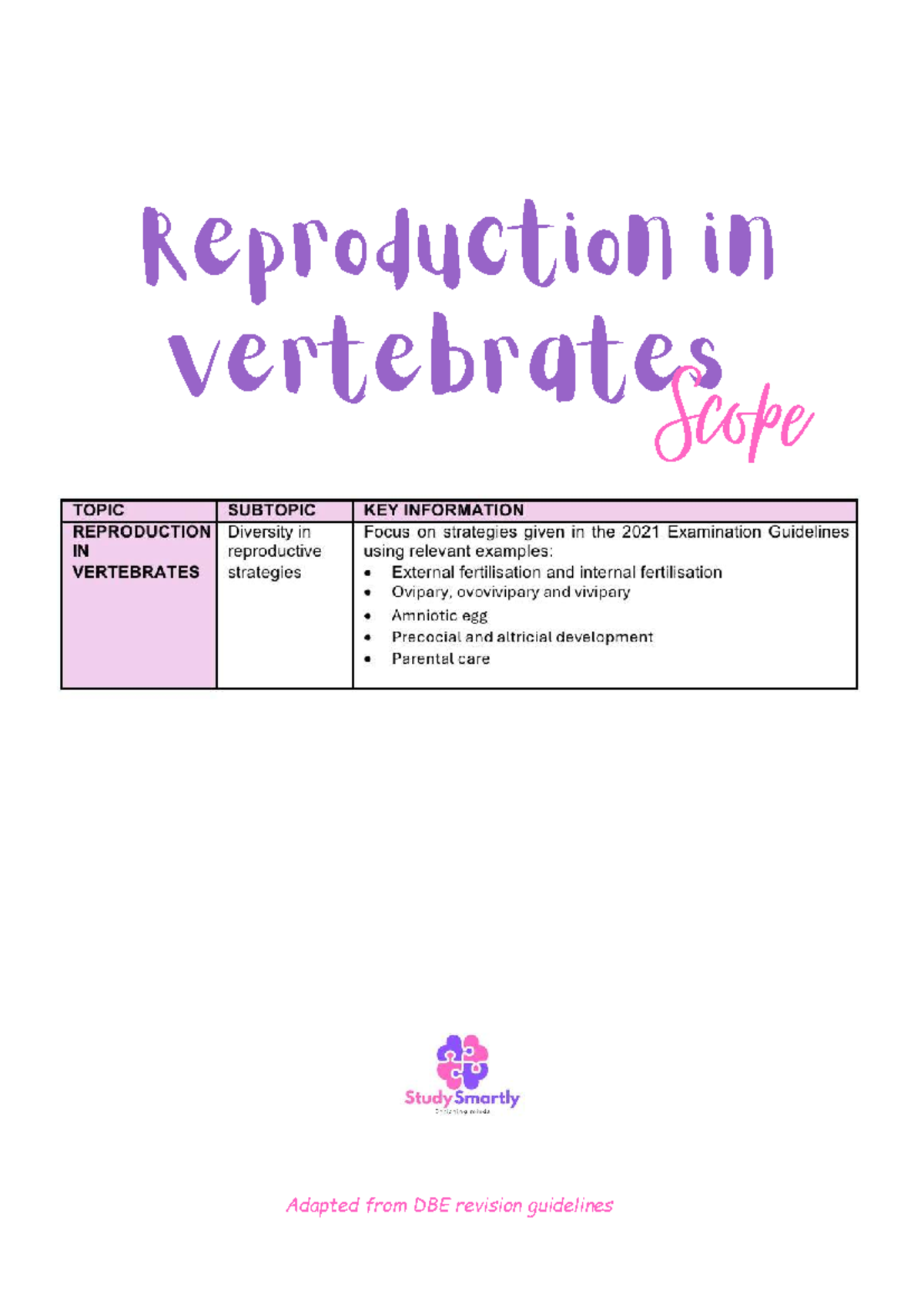 Reproductive Strategies in Vertebrates: Overview and Key Concepts - Studocu