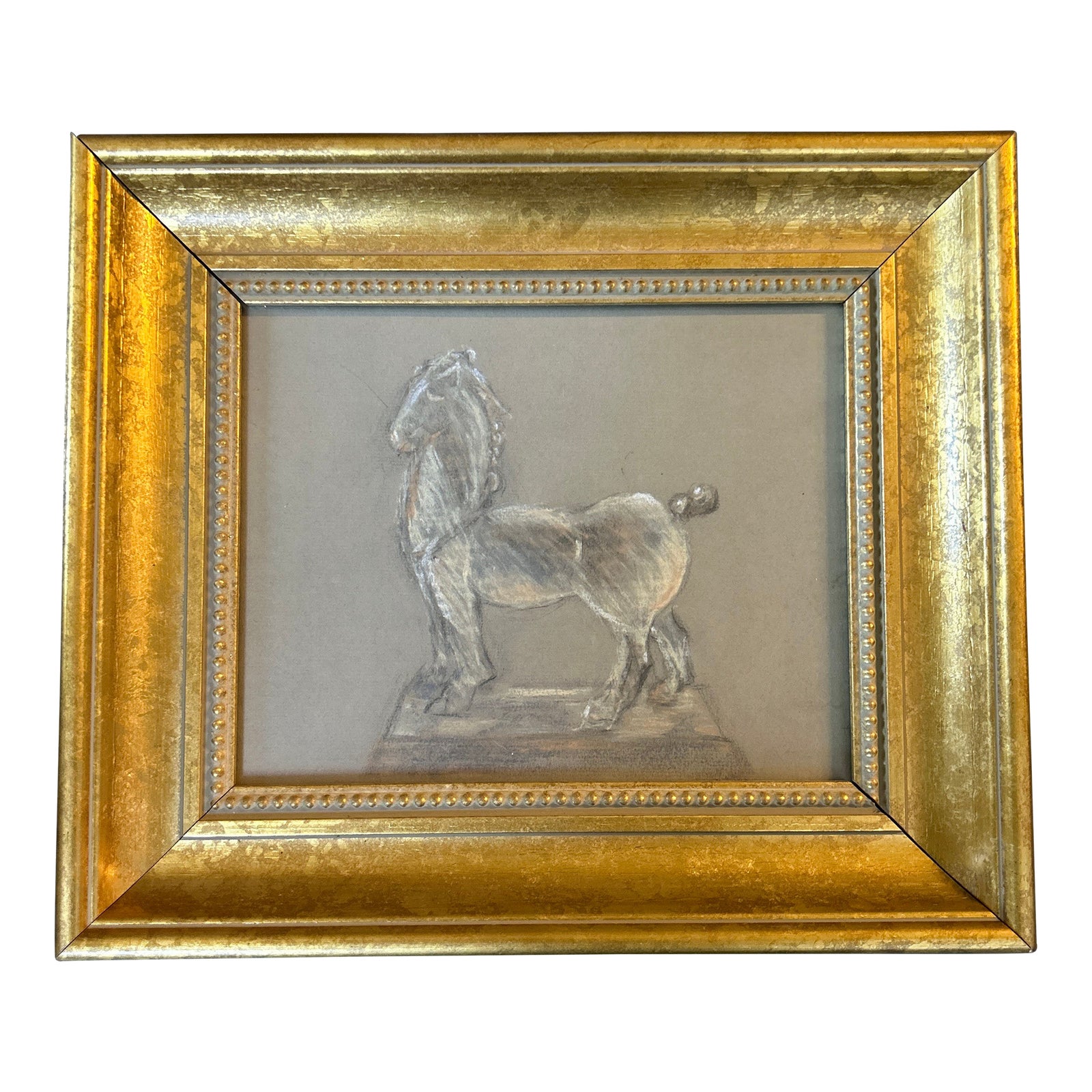 1970’s Original Horse Statue Still Life Pastel Drawing | Chairish