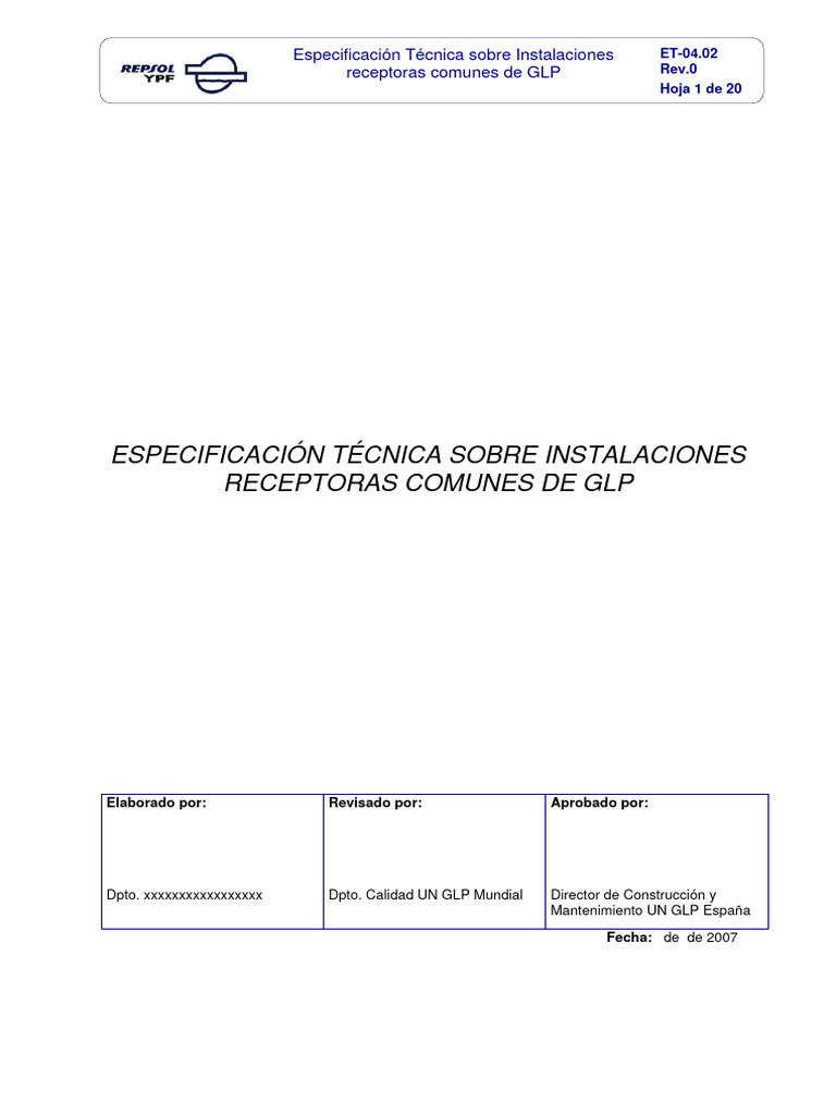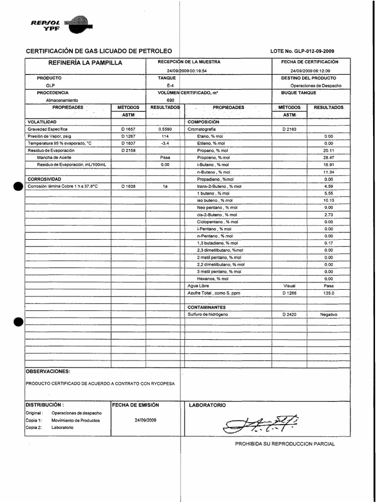 Especificaciones Técnicas Del GLP - Repsol Ypf | PDF