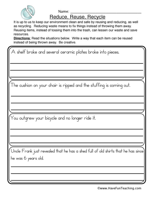 Reduce, Reuse, Recycle Scenarios Worksheet - Have Fun Teaching