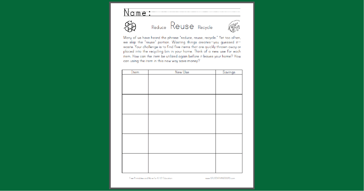 Reduce, Reuse, Recycle Worksheet