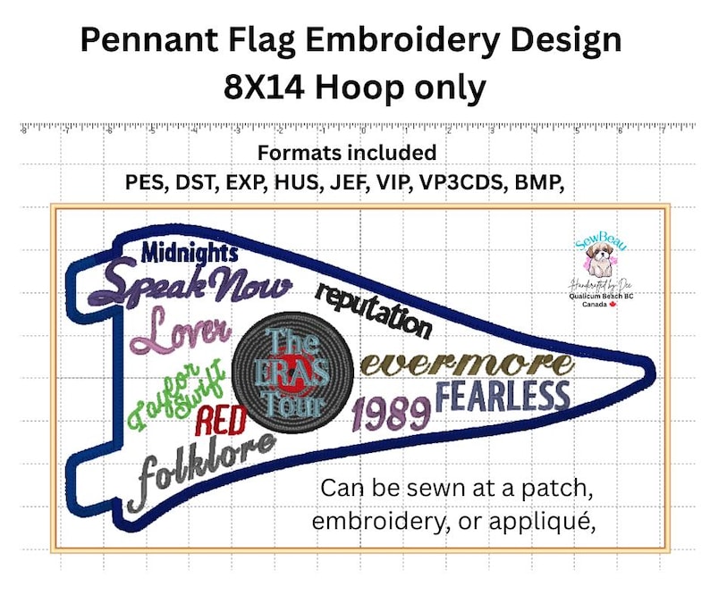 Taylor Swift Eras Tour Pennant Embroidery Design (8x14 Hoop) (digital ...