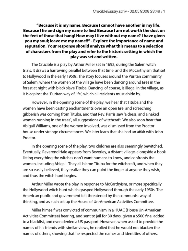 Crucible Essay - Explore The Importance of Reputation. | PDF